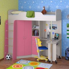 Кровать-чердак "Теремок-1" Дуб молочный/Розовый | фото