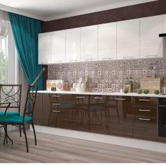 Кухонный гарнитур Люкс 3500 Белый глянец/Шоколад глянец (модульный) Горизонт
