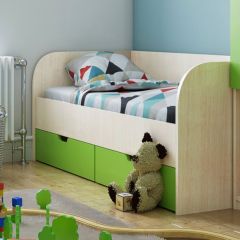 Киви №4 Кровать с ящиками (ЛДСП молочный дуб/лайм) | мини фото 1