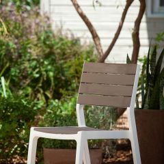 Современный по своей форме и очень удобный в использовании стул Harmony будет идеальным дополнением к приусадебному саду или террасе, а также к интерьеру. Удобная спинка и сидение, а также панельная вставка с фактурой, напоминающей поверхность древесины, являются преимуществами этого продукта. Стул просто собирается, легко чистится и стойкий к воздействию погодных условий.