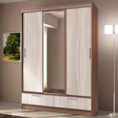 Шкаф-купе 3-х дв. с ящ. с 1м зерк. (ЛДСП ясень шимо темный/ясень шимо светлый)